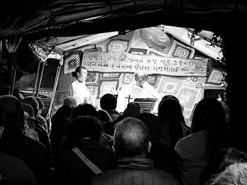 지난 4월 4일 저녁 8시, 구해군기지정문앞 강정생명평화미사 천막에서, 부활 성야 미사가 있었습니다. 예수회 김성환 신부, 박종인 신부에 의해서 미사가 봉헌되었는데, 약 30명의 사람들이 함께 했습니다.
