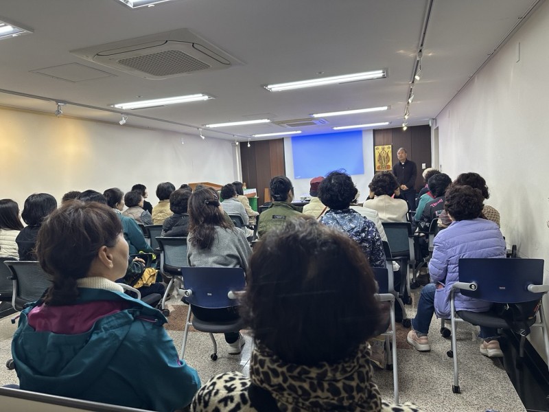 오늘(11월 13일), 광주교구 금호동 성당 신부님과 신자들 서른 일곱 분이 우리 센터에 와서, '제주 가슴이 미어진다' 영상을 보고, 센터장 김성환 신부님의 평화교육 강의를 들었습니다.